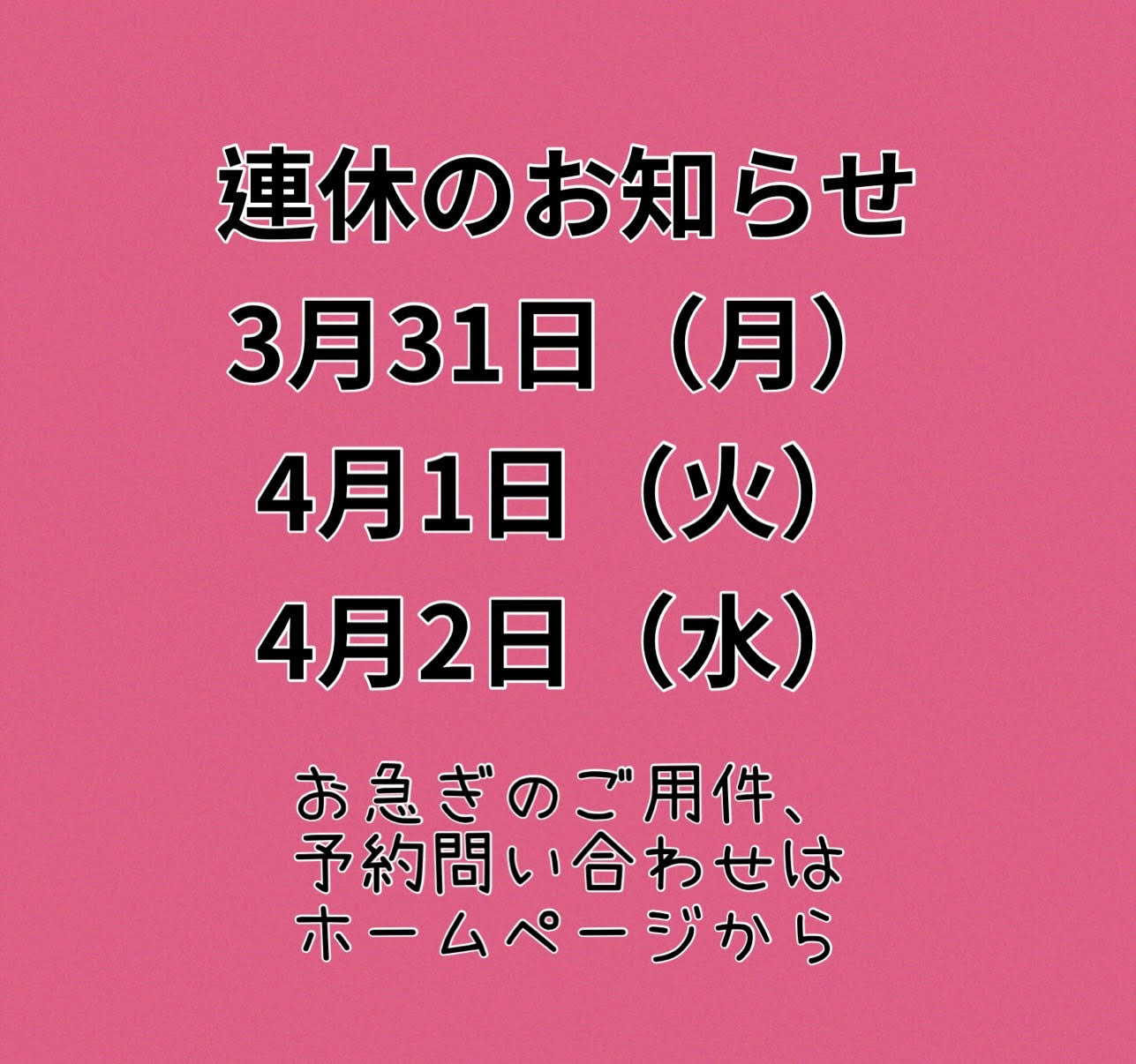 明日から、3連休のお知らせ